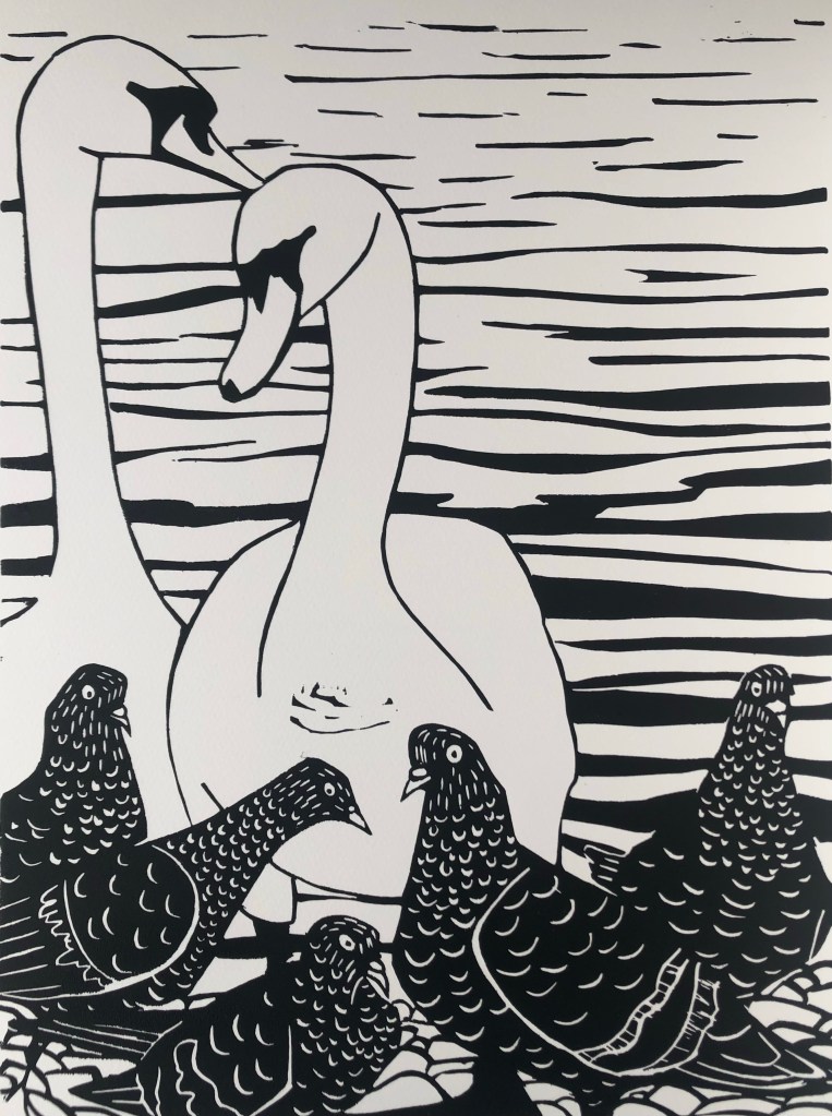 The title for the print comes from Hebrews 3:1, describing the relationship between members of the community, while the idea of the print comes from a photograph of swans and pigeons on St Margaret’s Loch. The photograph and this print capture the diversity of living in community with other people, and we hope captures St Margaret’s purpose of living and working with the whole community. This is a limited edition of thirty prints. King Charles has number 1 in the edition.