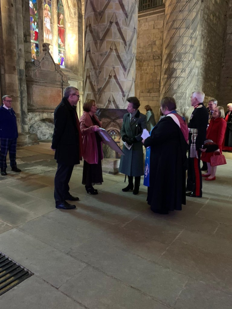 After the 950th Anniversary service for Dunfermline Abbey on Wednesday 16th November 2022, the Princess Royal was presented with the second of the two specially commissioned prints.