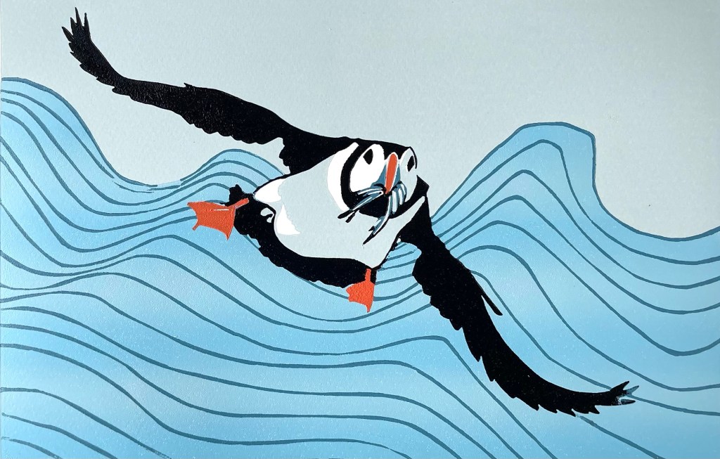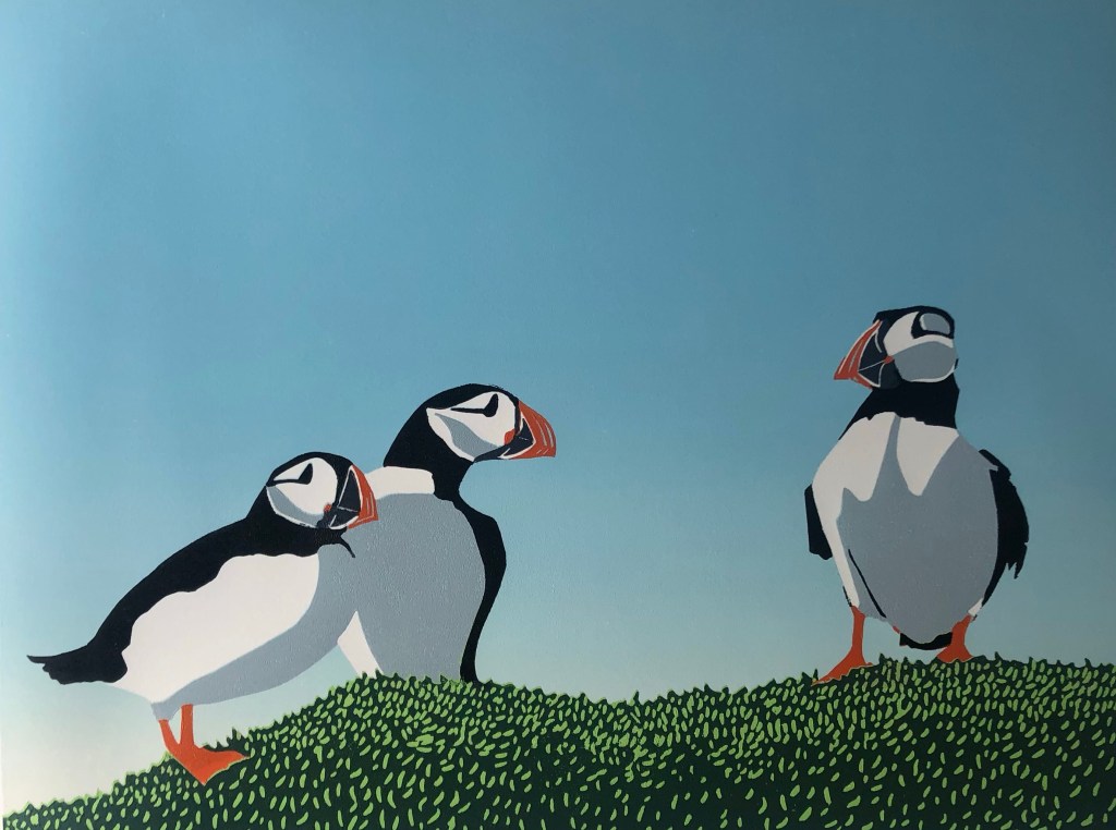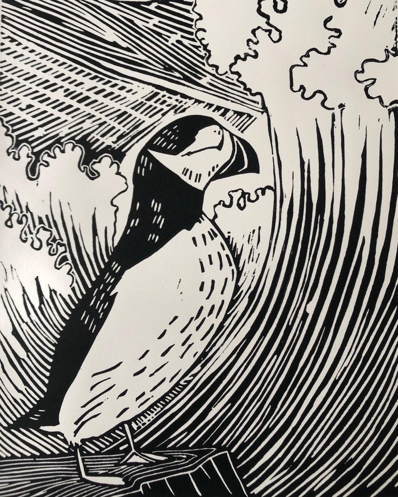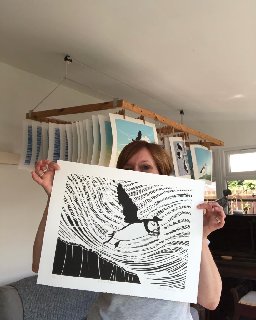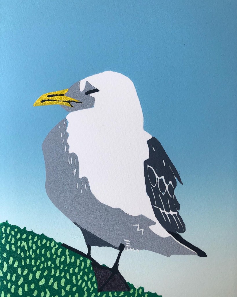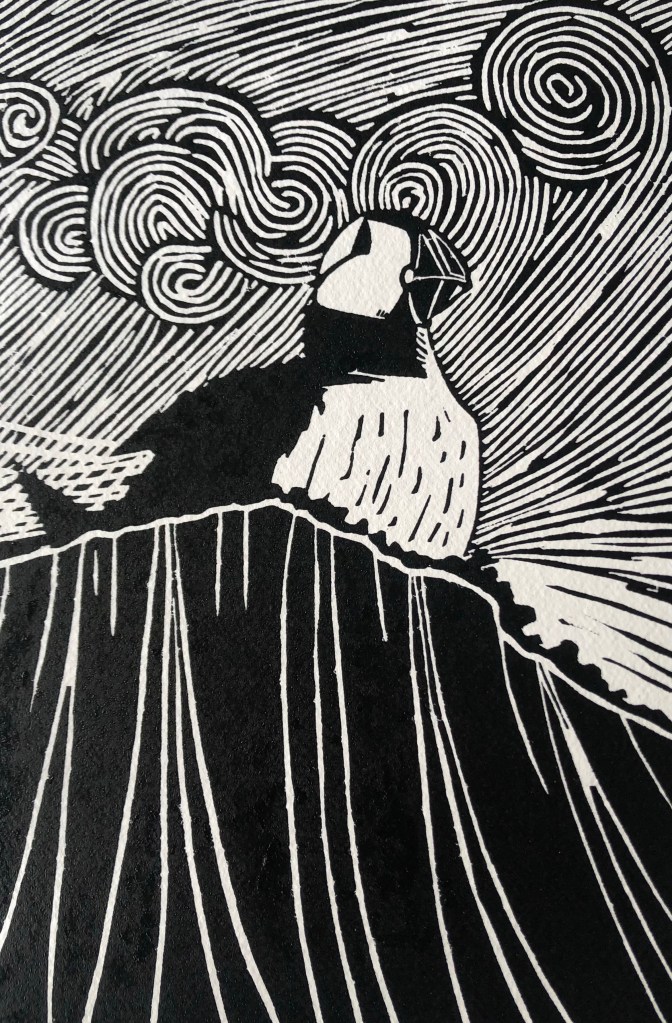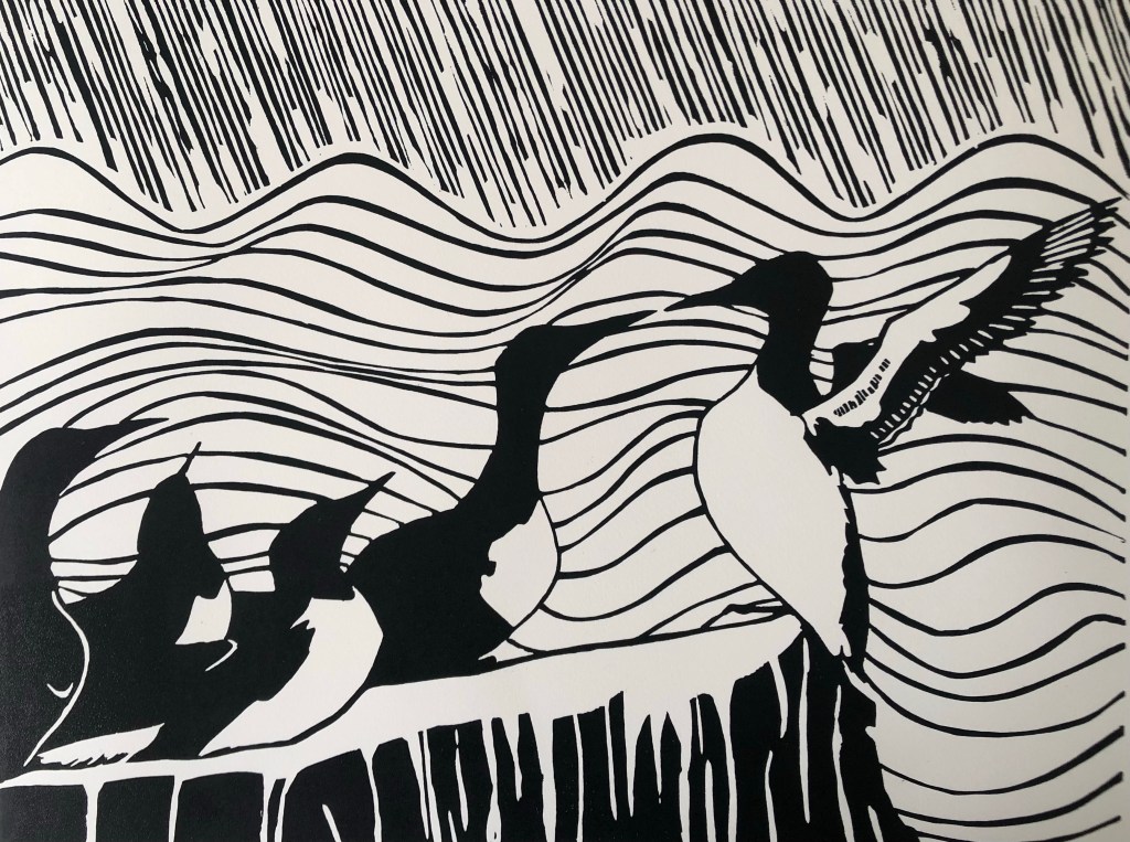 In 2022 I successfully applied for a grant from Creative Scotland for a year long project about the seabirds in my native county of East Lothian. I have been visiting places along the coast to learn more about our native birds and to gather source material for a series of linocut prints of these birds.